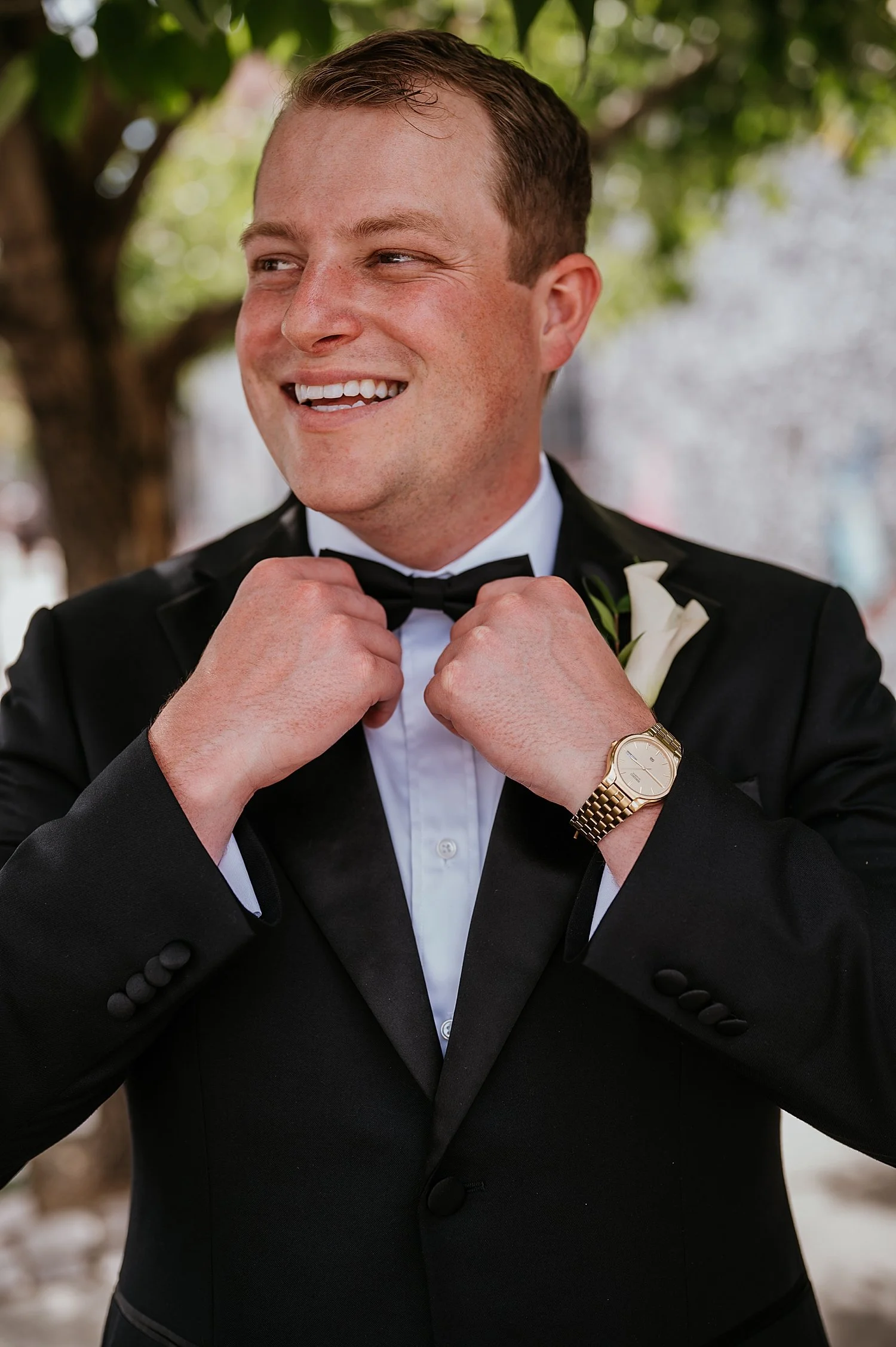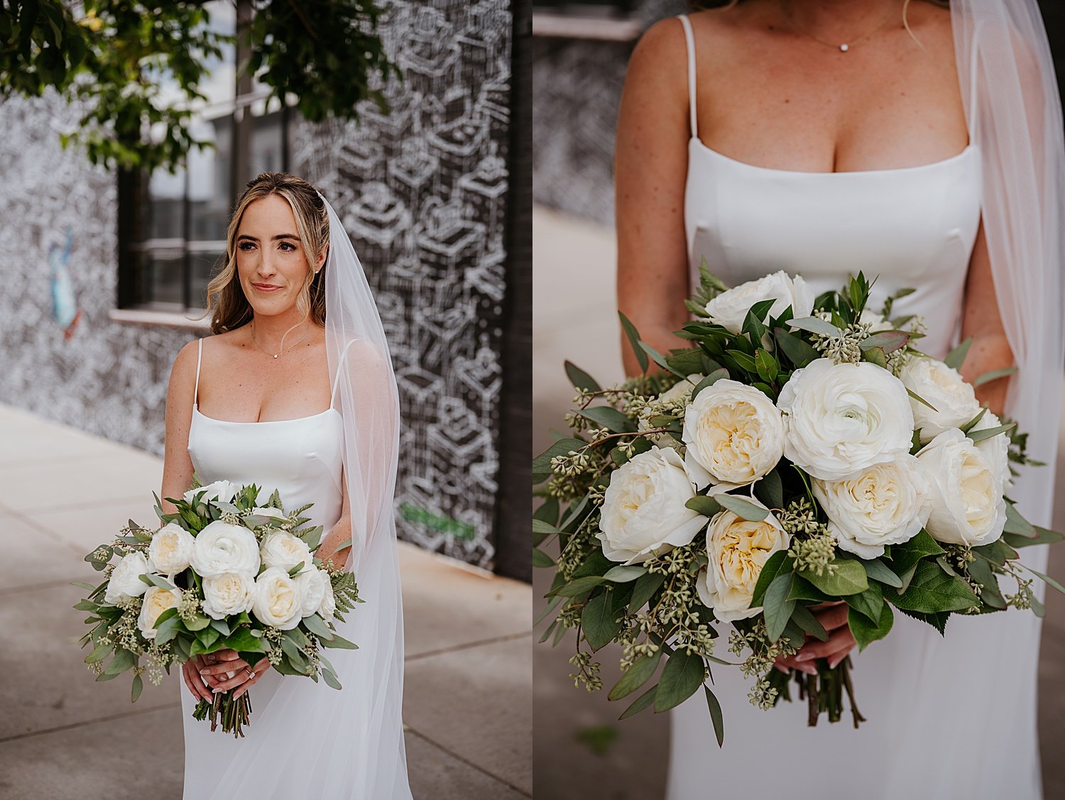 This downtown Denver fall wedding was the best way to finish up my wedding season in 2025. These two are not only the best pup parents but are so very clearly best friends. Check out this wedding for smiles, classic wedding beauty and dark green / white color vibes.