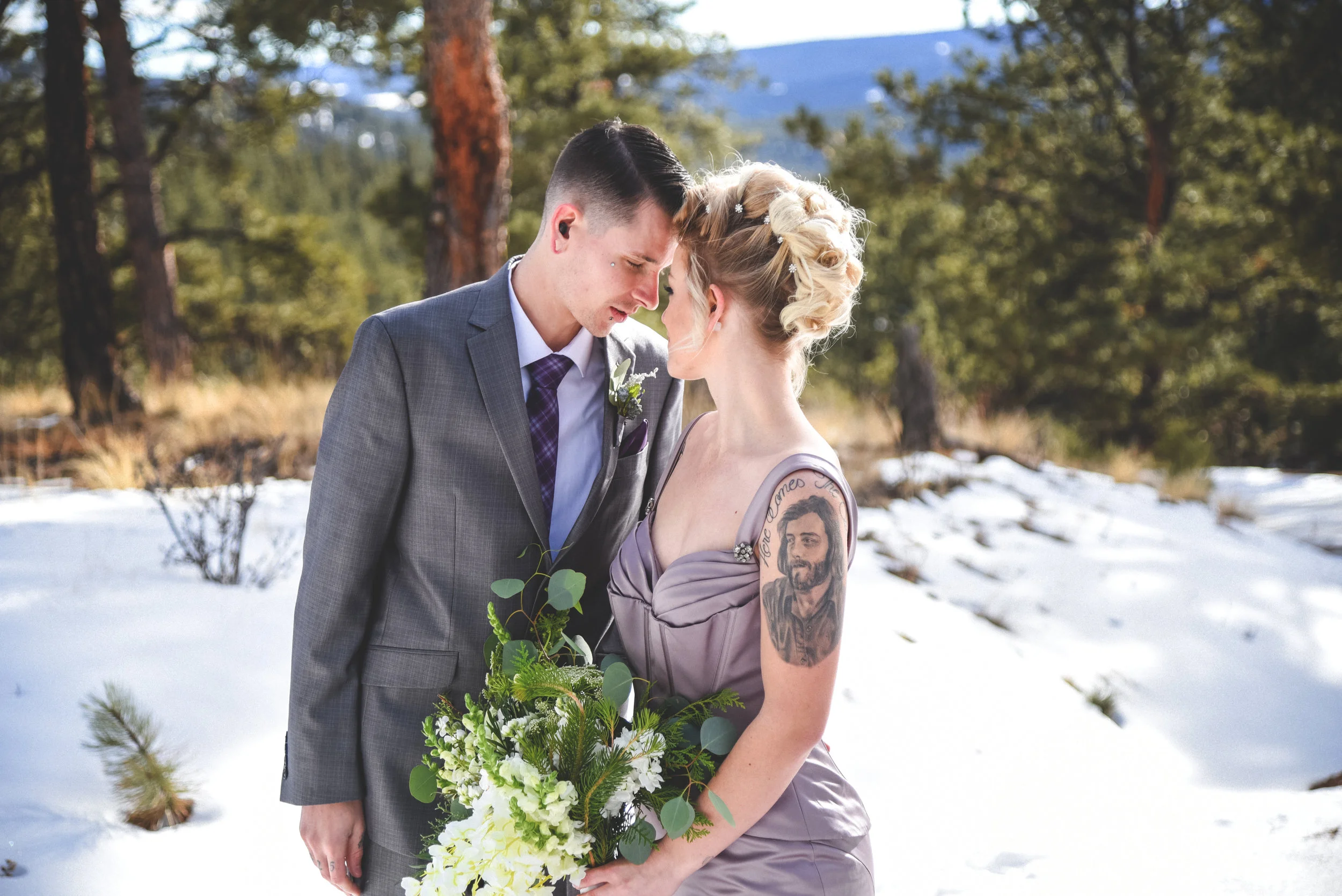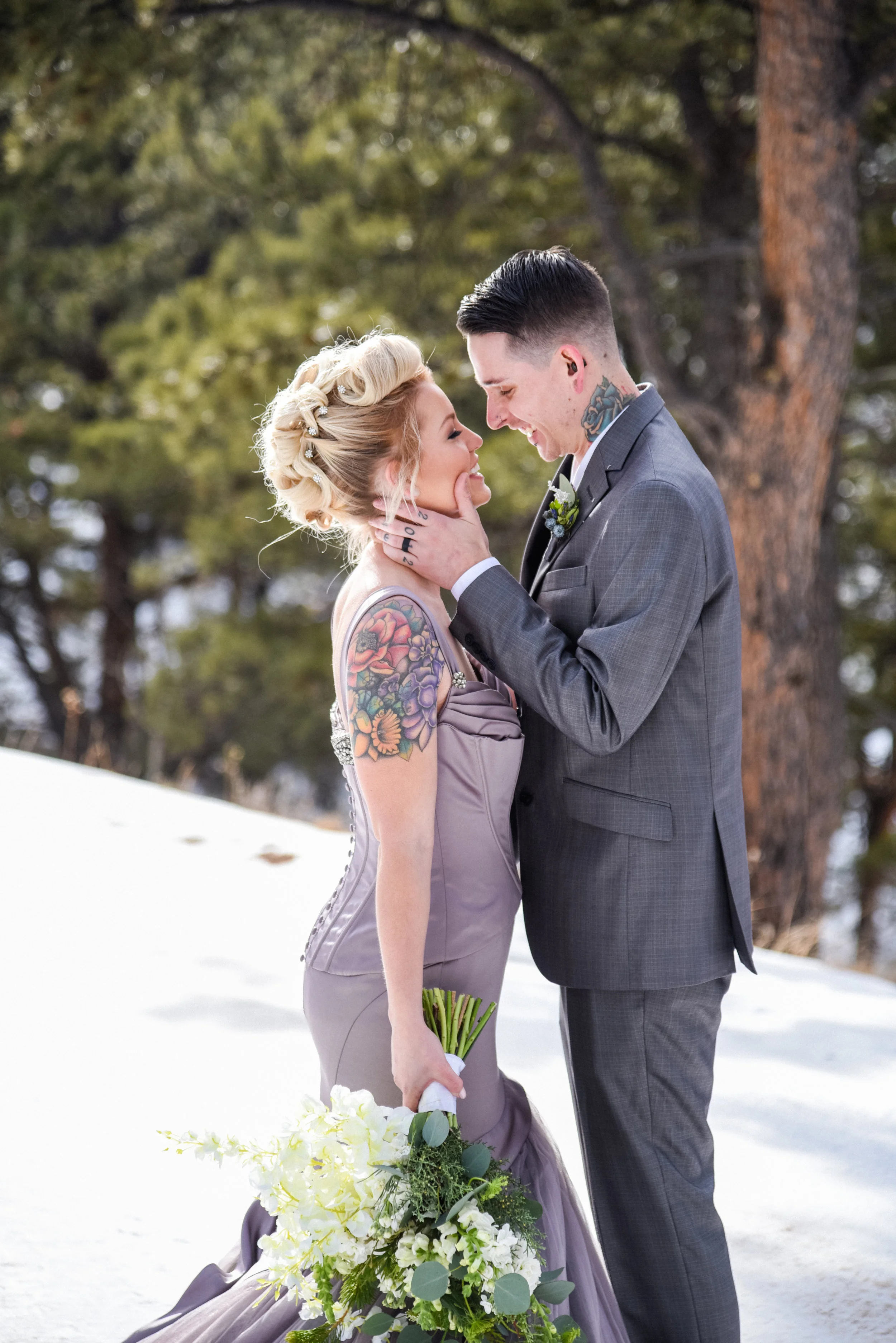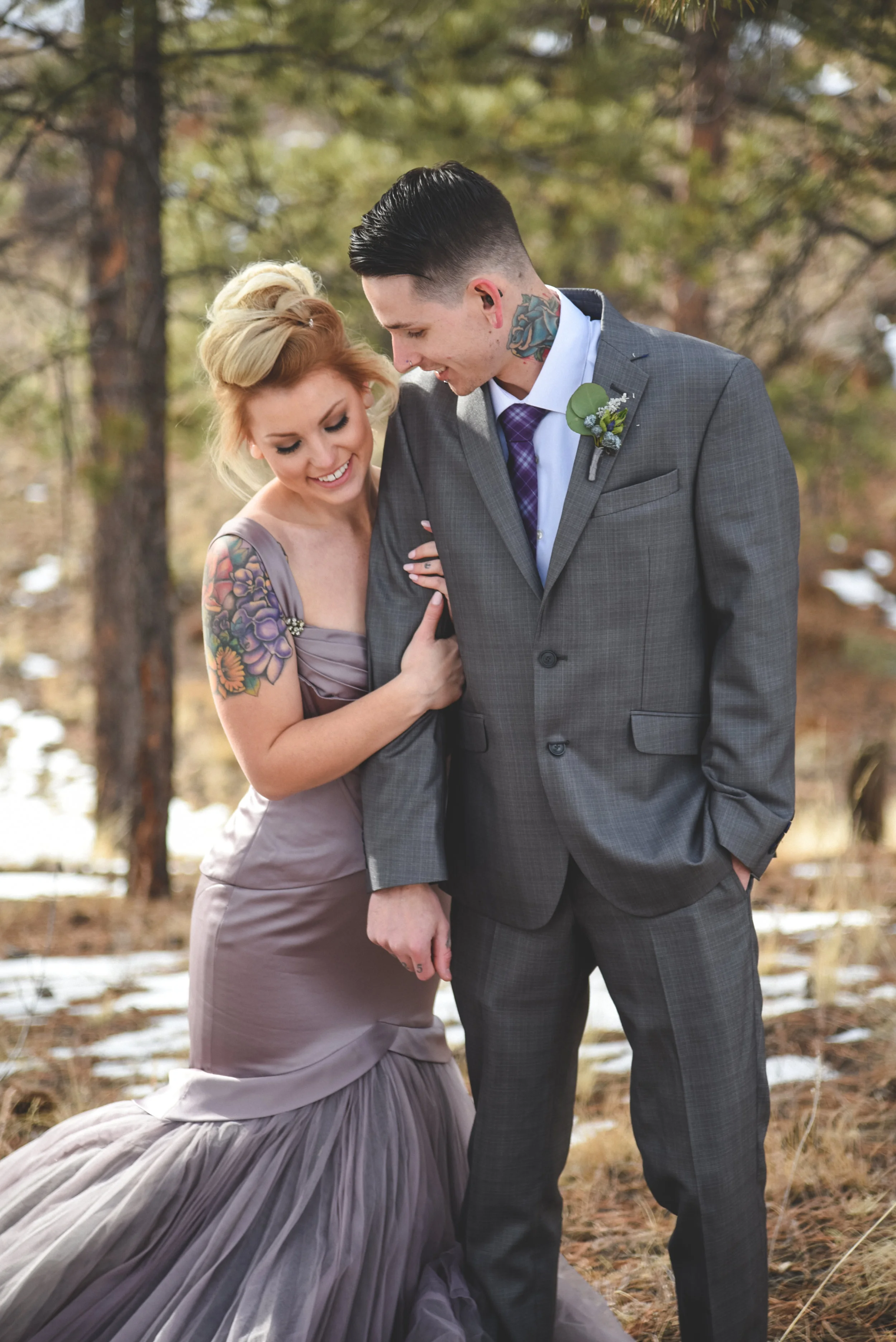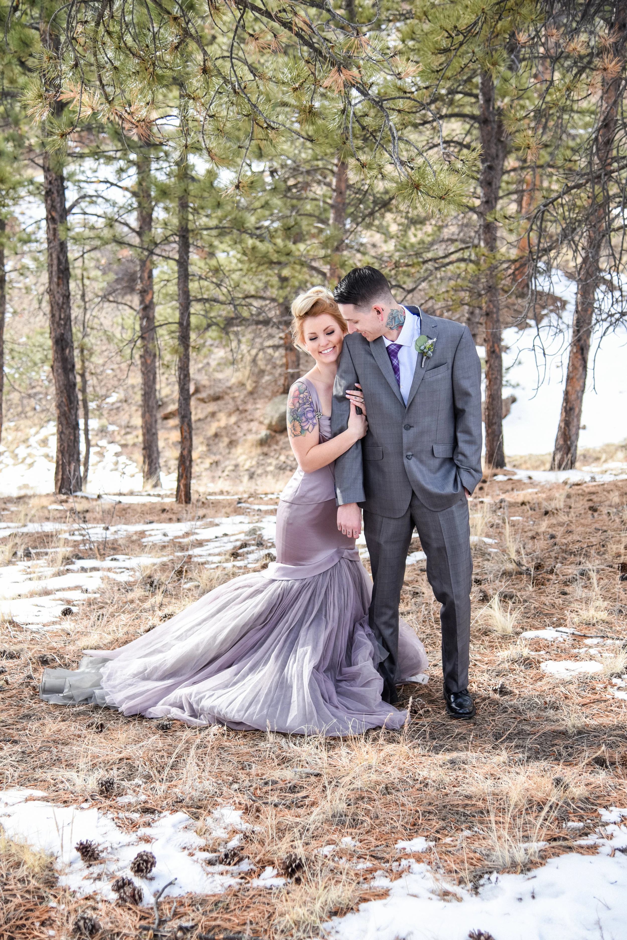 Nestled just below Pikes Peak in the Rocky Mountains, Regaina and Cory vowed to love each other for ever and always. Sprinkled in tattoos and piercings, this alternative bride and groom were complete with purple and black dressings. True love knows no boundaries and has truly brought two perfect souls together as one.