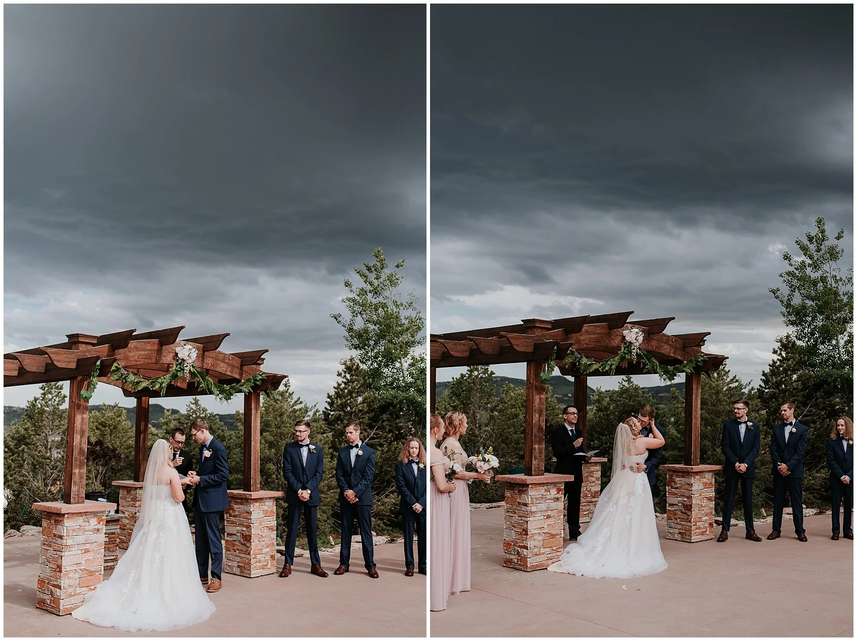 With storms rolling in, and the bridesmaid making it back (on time!) the wedding ceremony began underneath a cloudy and stormy sky which actually made for some gorgeous wedding photos.